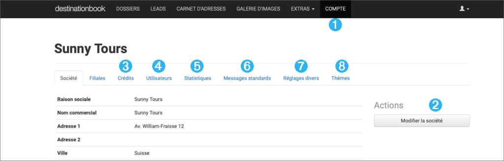 Dans la barre de navigation principale, choisissez «Compte» ➊. Cette interface vous permet: